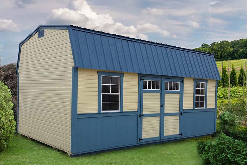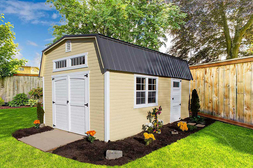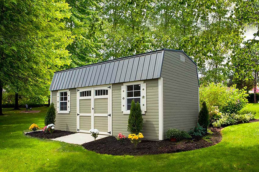 A tall gambrel-style roof with two overhead lofts affords ample storage. This popular barn will give you the extra square footage you need.